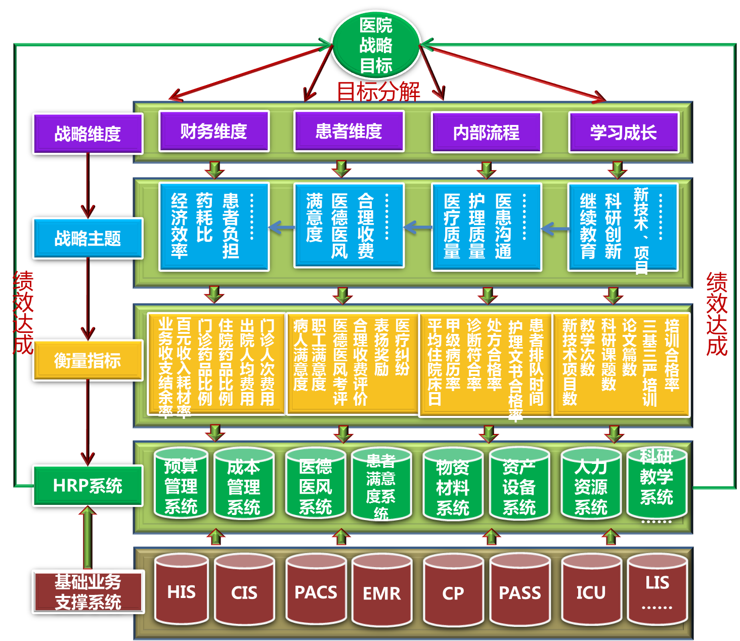 通过调研沟通、为医院量身设计方案,提供医院的战略绩效管理咨询服务。首先,结合医院发展战略,从战略目标、集团化财务成本管控、预算管理、物流管理、资产设备、人力资源、BI决策等全方位、多视角分析,梳理医院发展战略,找准问题关键点,平衡“政府公益性导向、公众诉求、员工利益、管理目标”的关系。然后从财务、客户、内部流程、学习成长四个维度进行层层分解落实,形成医院、科室、个人三级战略地图,并制定与之匹配的行动方案,最终达到落地医院发展战略和管理目标的目的。